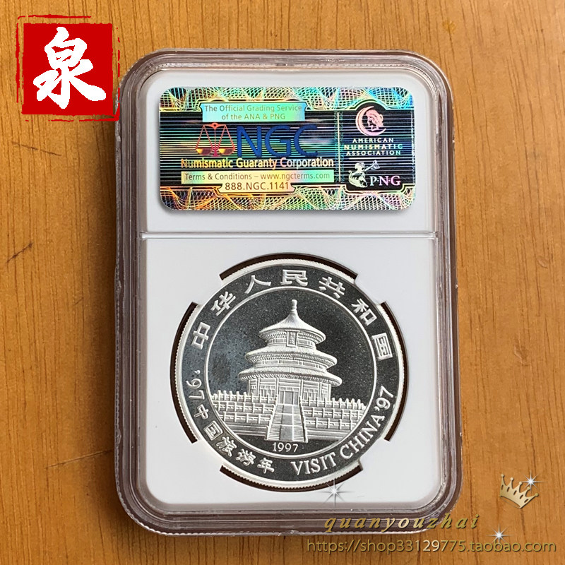 NGC67--1997 Китайский год туристического года Гигантская панда 1 унция серебряная монета. Путешествие года Панда с серебряной монетой. Медведь