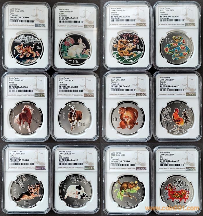 Серебряная монета, 1998-2009 года, полный комплект, китайский гороскоп