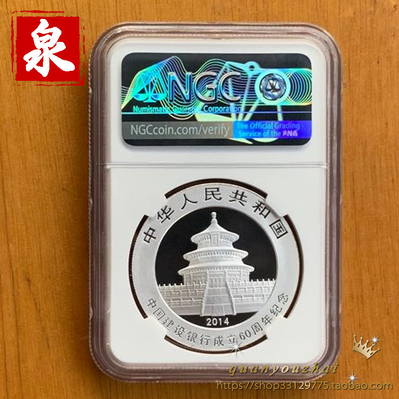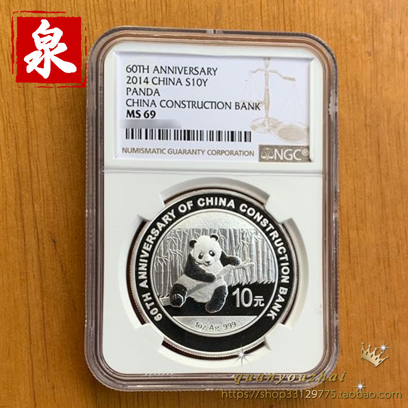 NGC69 --- 2014 Серебряный банк среднего штата 60-летие Panda Plus Plus Word 1 унция Серебряная монета