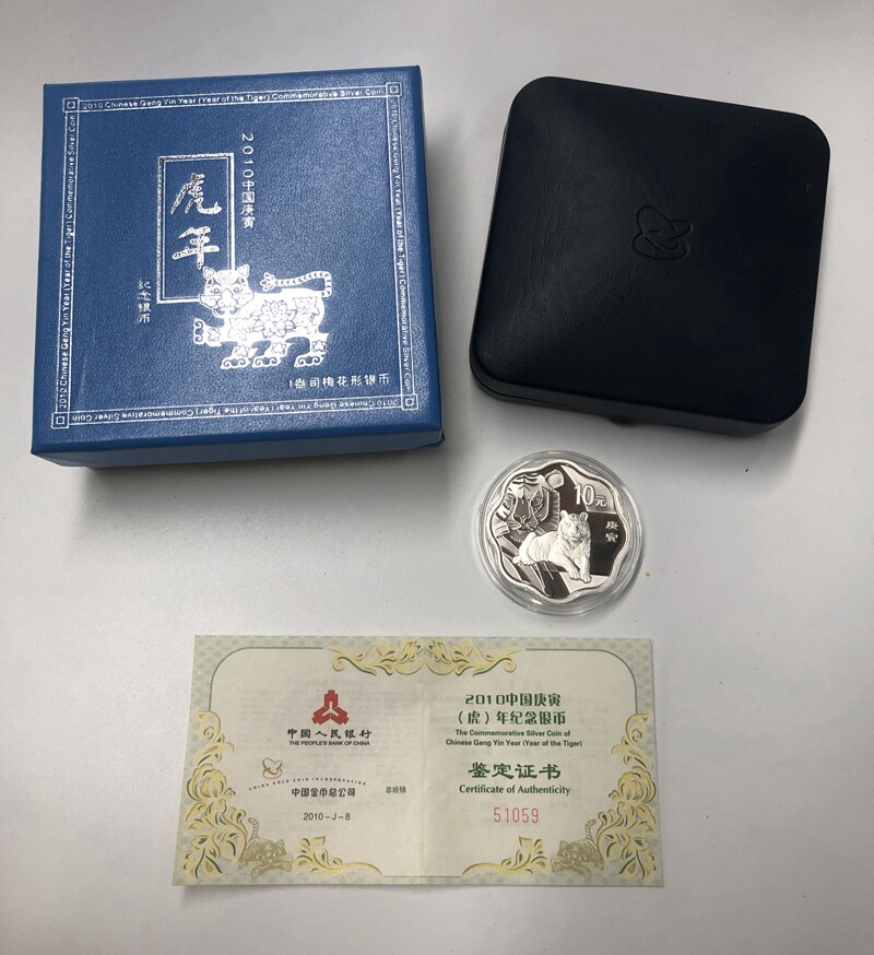 2010 Год тигровой сливы расцветайте серебряная монета .1 унция. Плиная цветущая серебряная монета тигра.