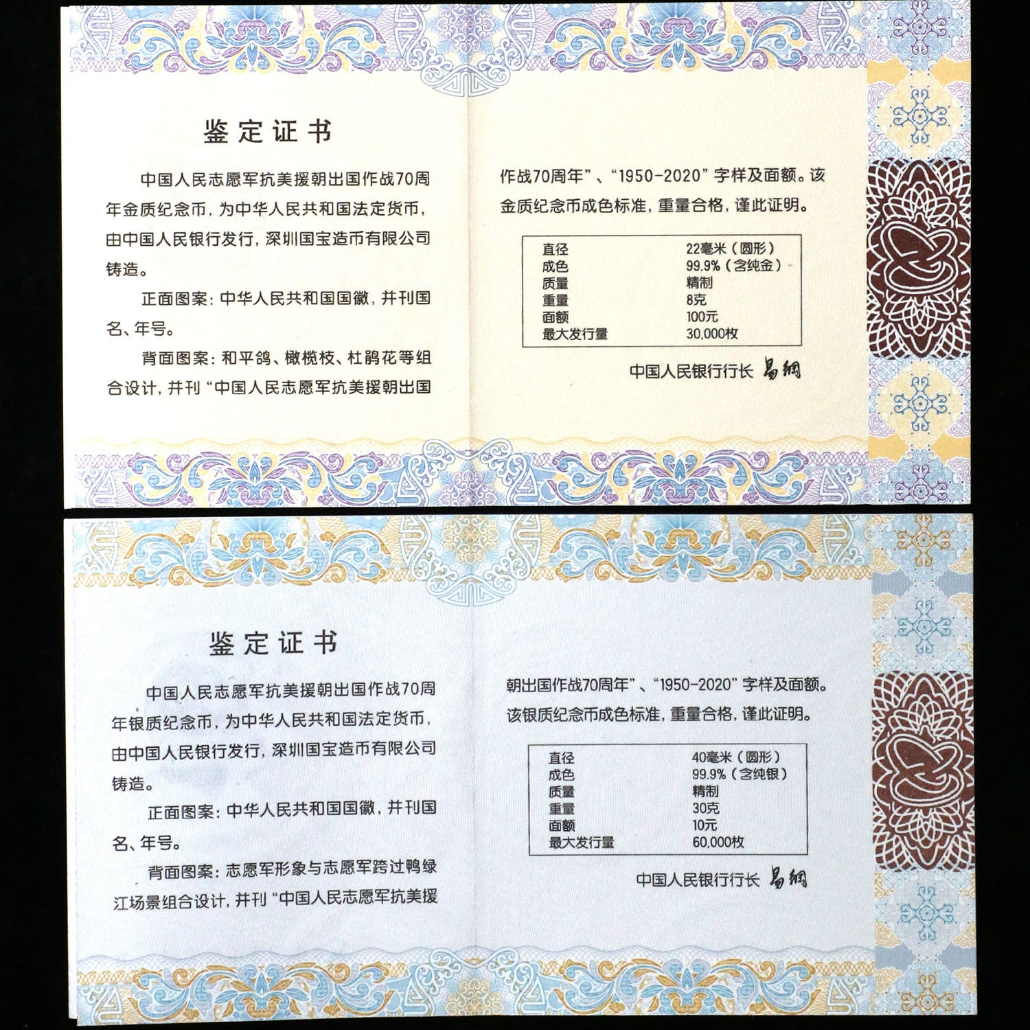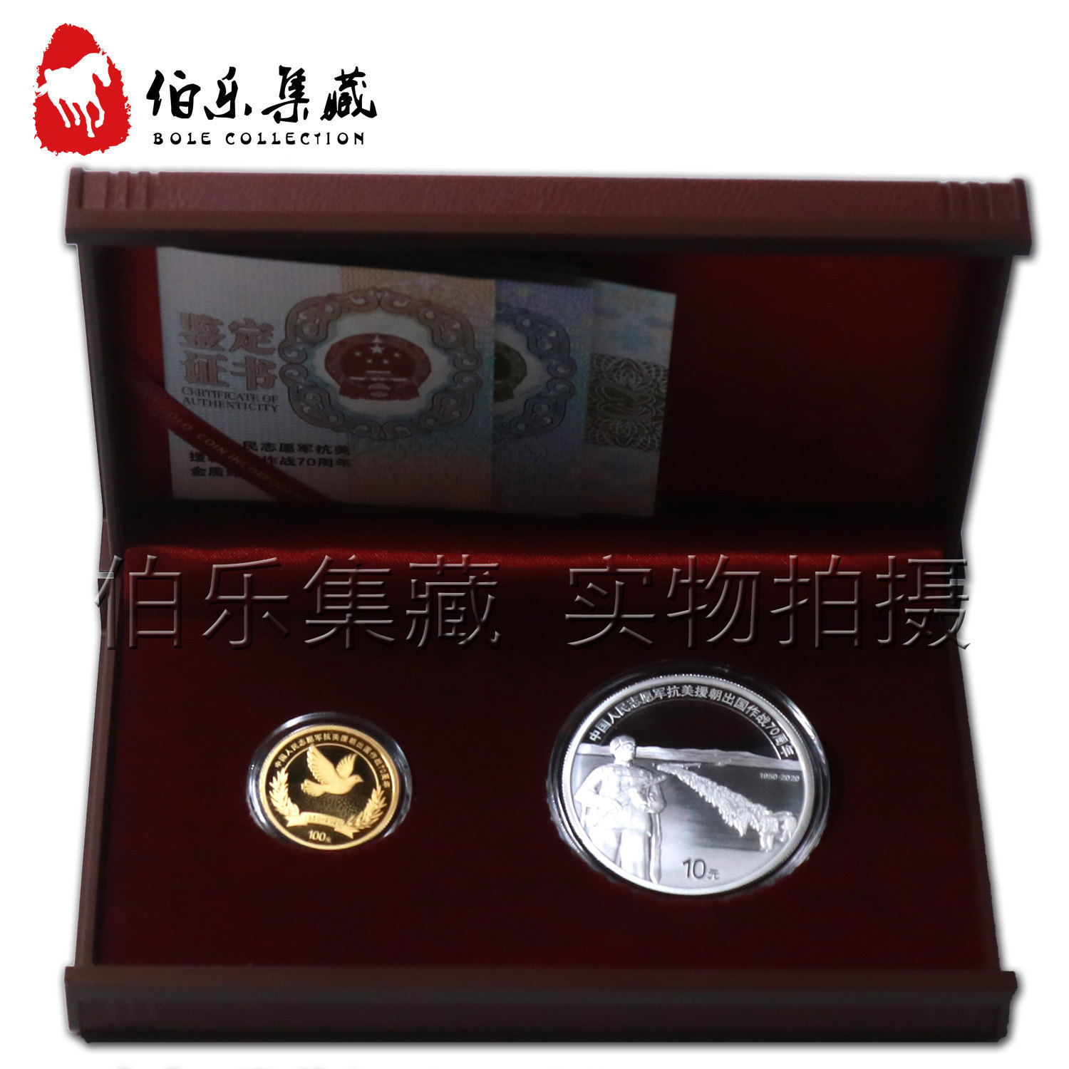 Новый оригинальный сертификат коробки 2020 года 70 -летие китайской народной армии добровольцев снова Соединенные Штаты и помощь Северной Кореей - это золотые и серебряные монеты