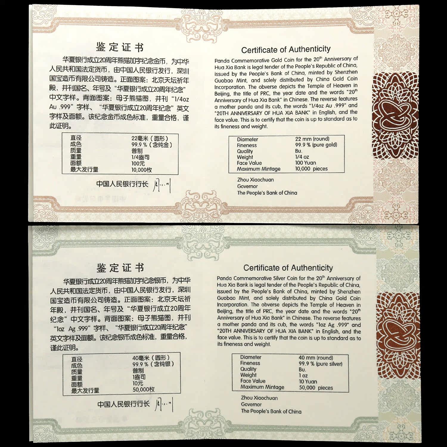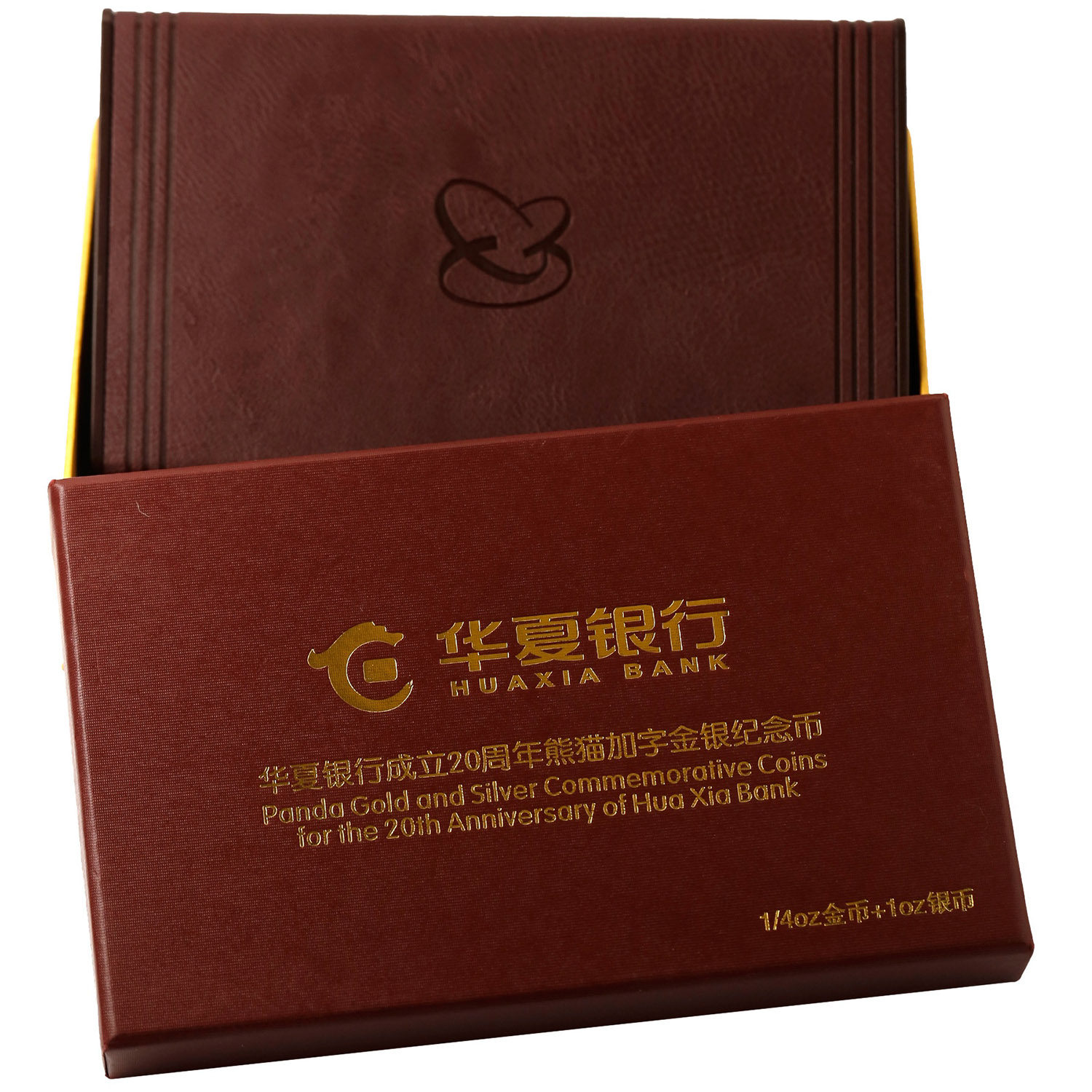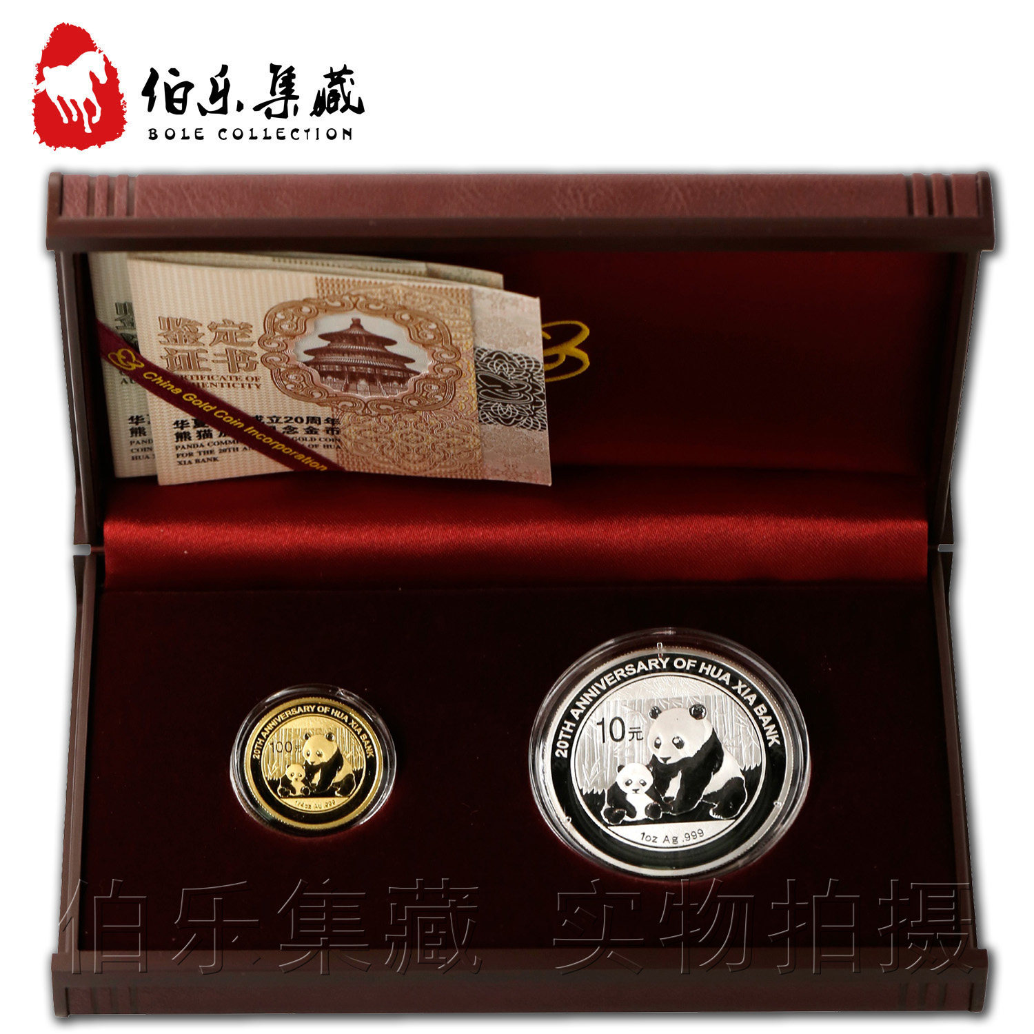[New Bazhen] Оригинальный сертификат коробки 2012 года Huaxia Bank 20 -летие Panda Plus Word Memoryorative Gold and Silver Coins