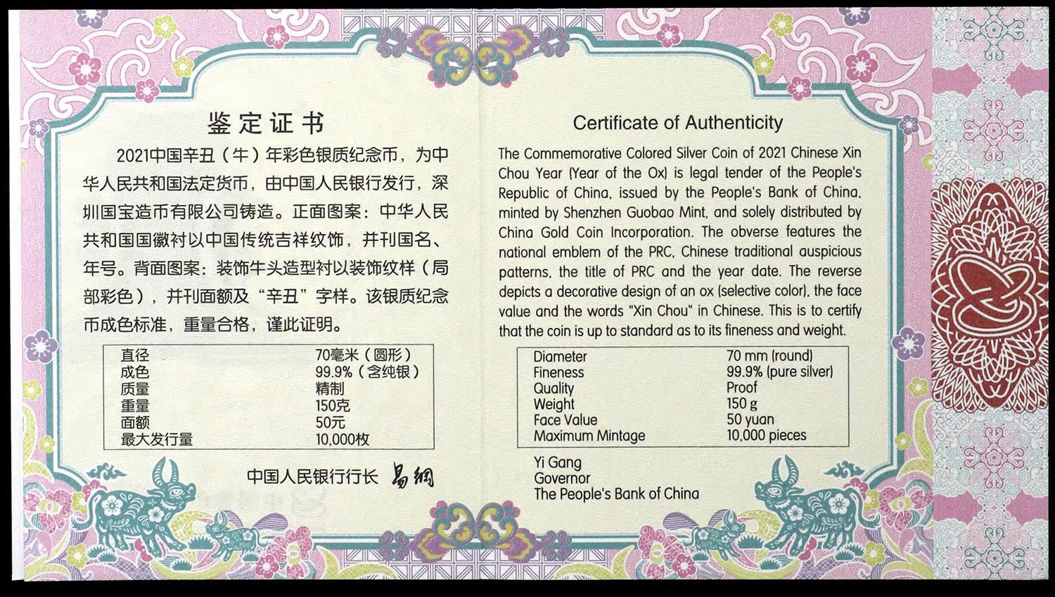 [Первый этап рейтинга NGC 70 баллов] Принесите сертификат 2021 150 граммов крупного рогатого скота, молодого цвета серебряной монеты молодого зодиака.