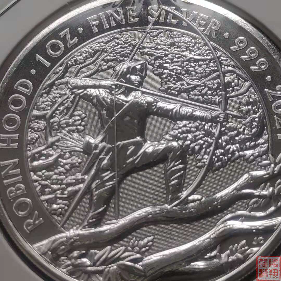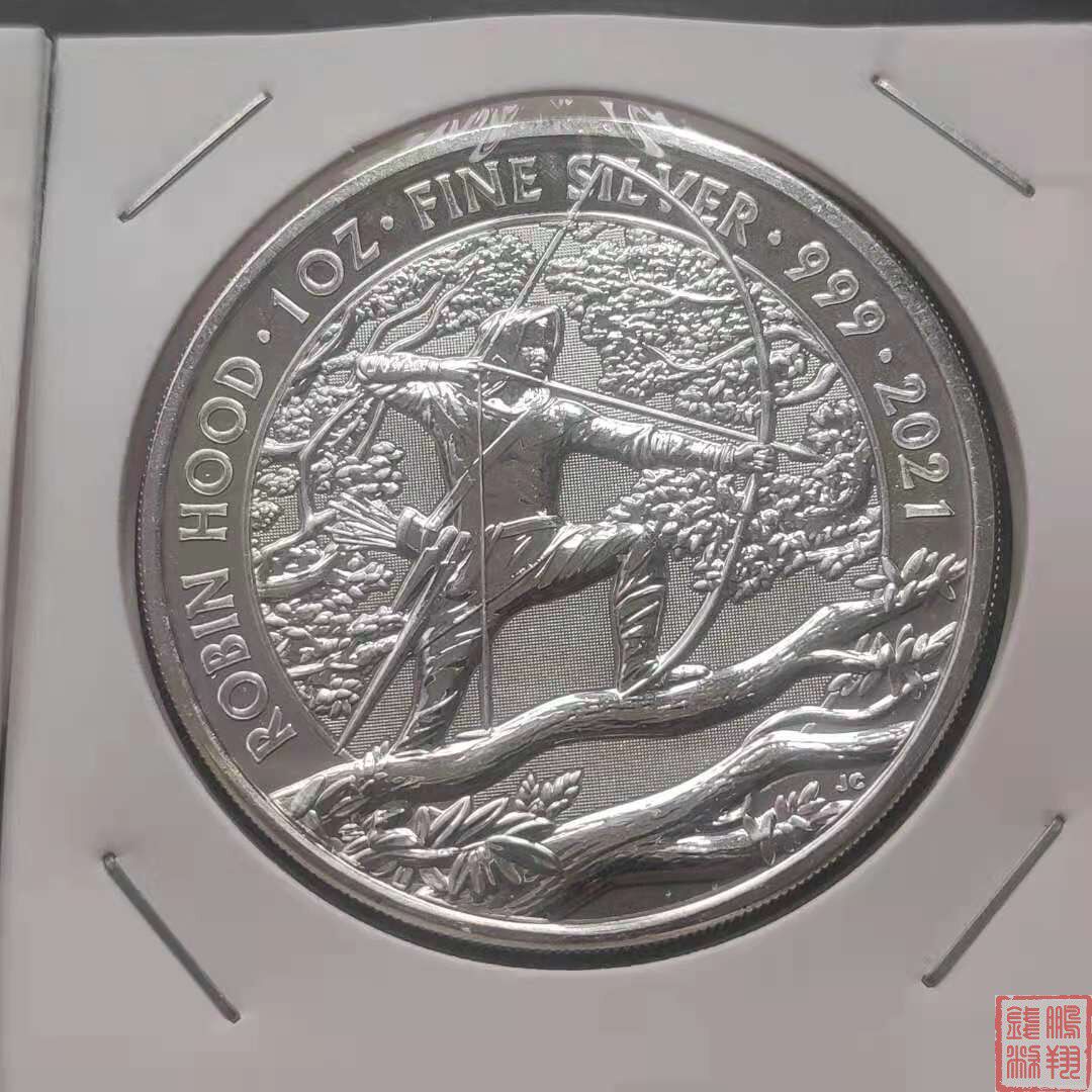 Пятно: 2021 1 унция серии «Британские зеленые леса» - Робин Гуд Робин Генерал Серебряные монеты