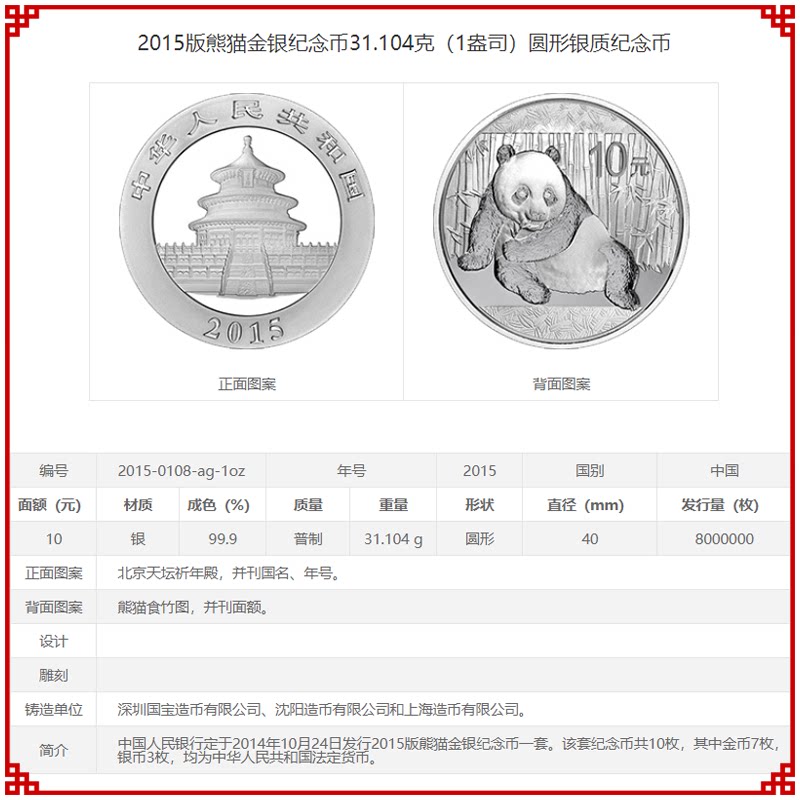Серебряная кошка 2015 Панда Серебряная монета 1 унции серебряной кошки Мемориальная монетная монет