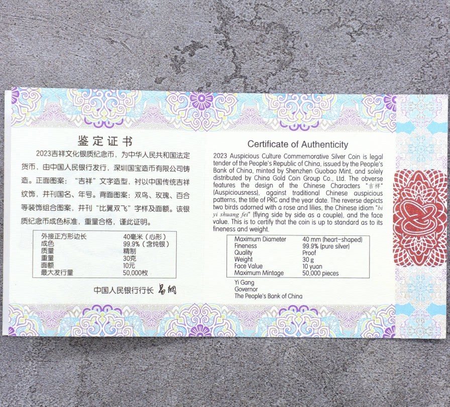 Благоприятная культура в 2023 году · Biyi Shuangfei Silver Coin 30 граммов 70 -точечного сертификата ремня.