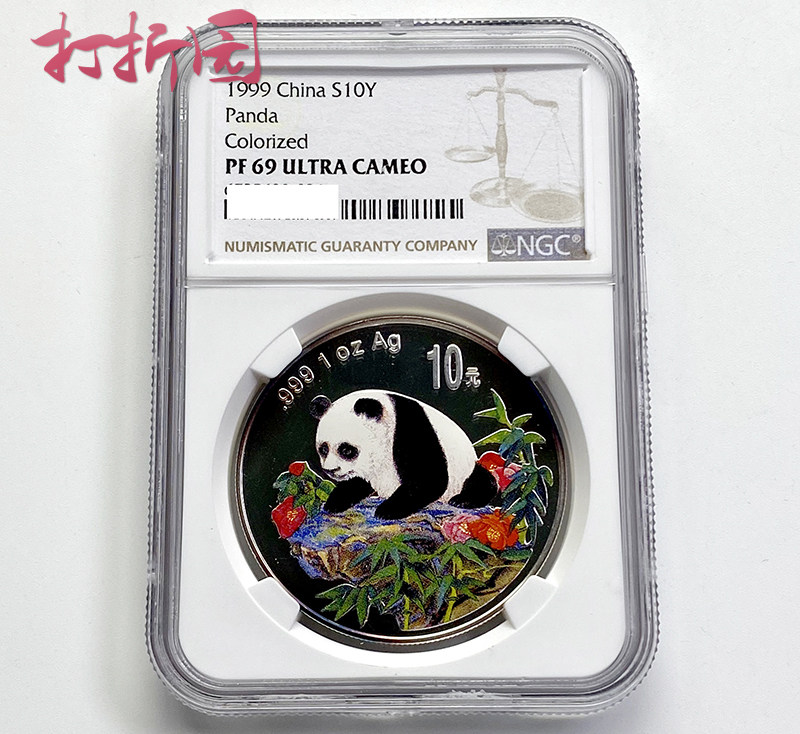 1999 Панда 1 унция цветных серебряных монет .99 Causeao. NGC RALITE 69 очков.