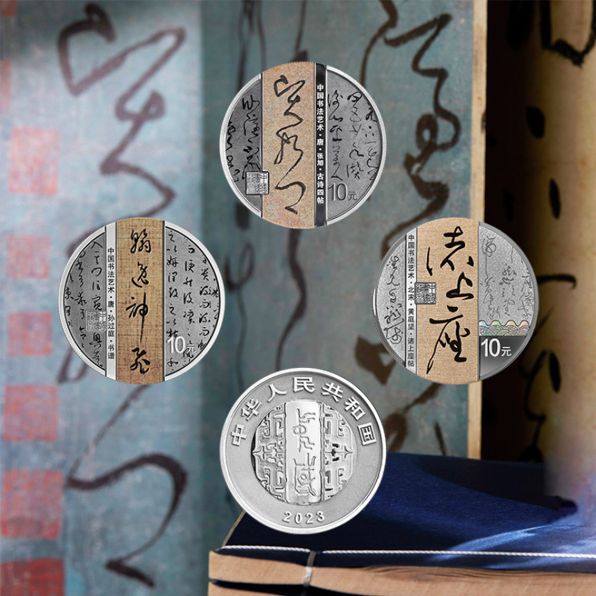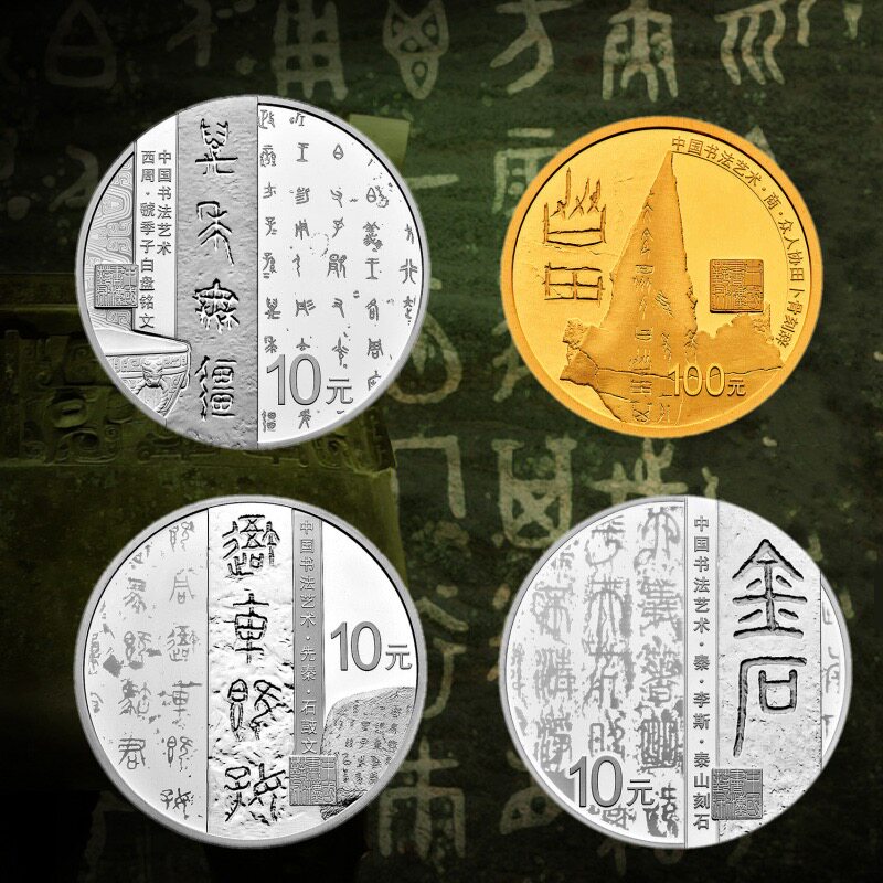 Китайская каллиграфия искусство (курсивное) Золотые и серебряные памятные монеты 30 г серебро 3+8 г золота Всего 4 набора монет