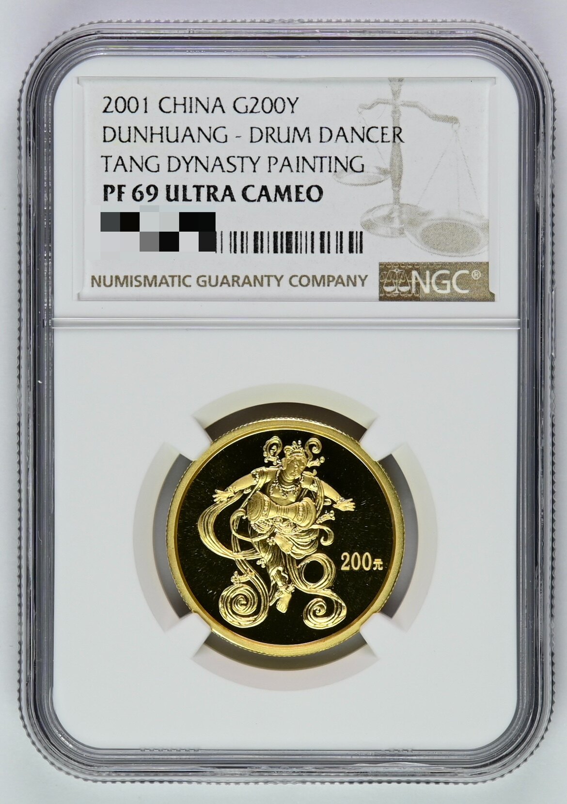 В 2001 году 1/2 унции золотых монет в Гротах Дунхуанга, Сертификат Dunhuang Gold Coin NGC69, Box Bao Sf