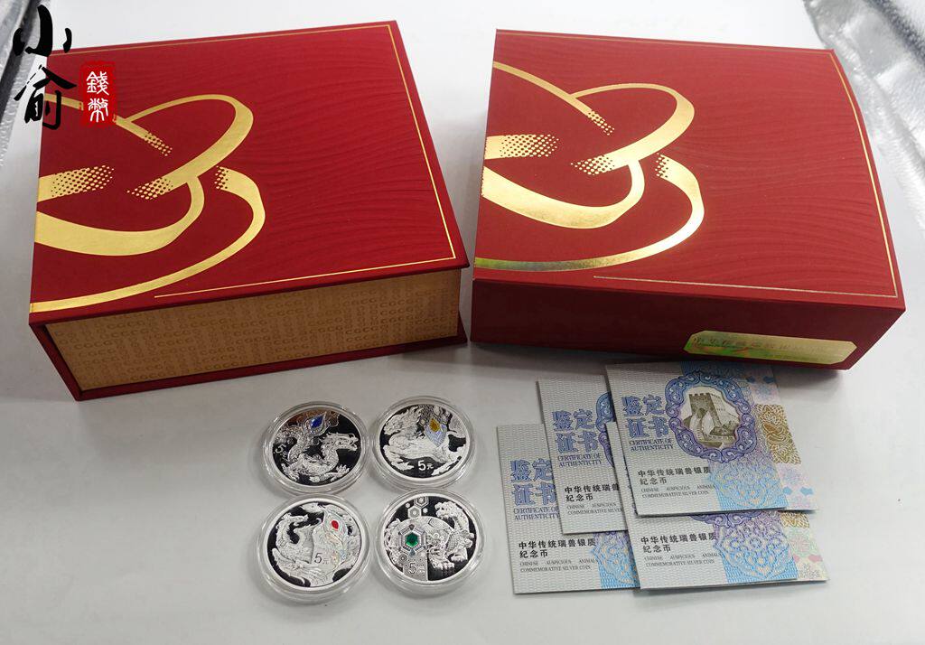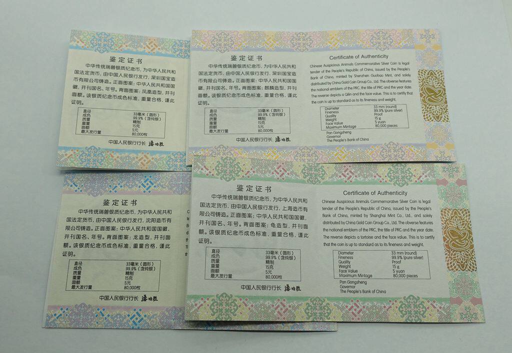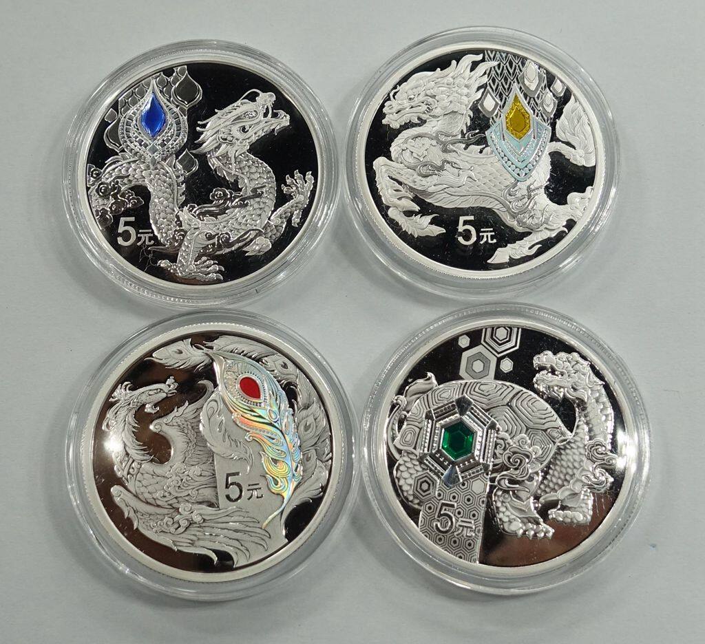 Четыре великих благоприятных Бога Зверя китайского традиционного швейцарского зверя Дракона Черепаха, П "Черепаха Феникс. 15 грамм серебряных монет. 4 комплекты оригинальной коробки.