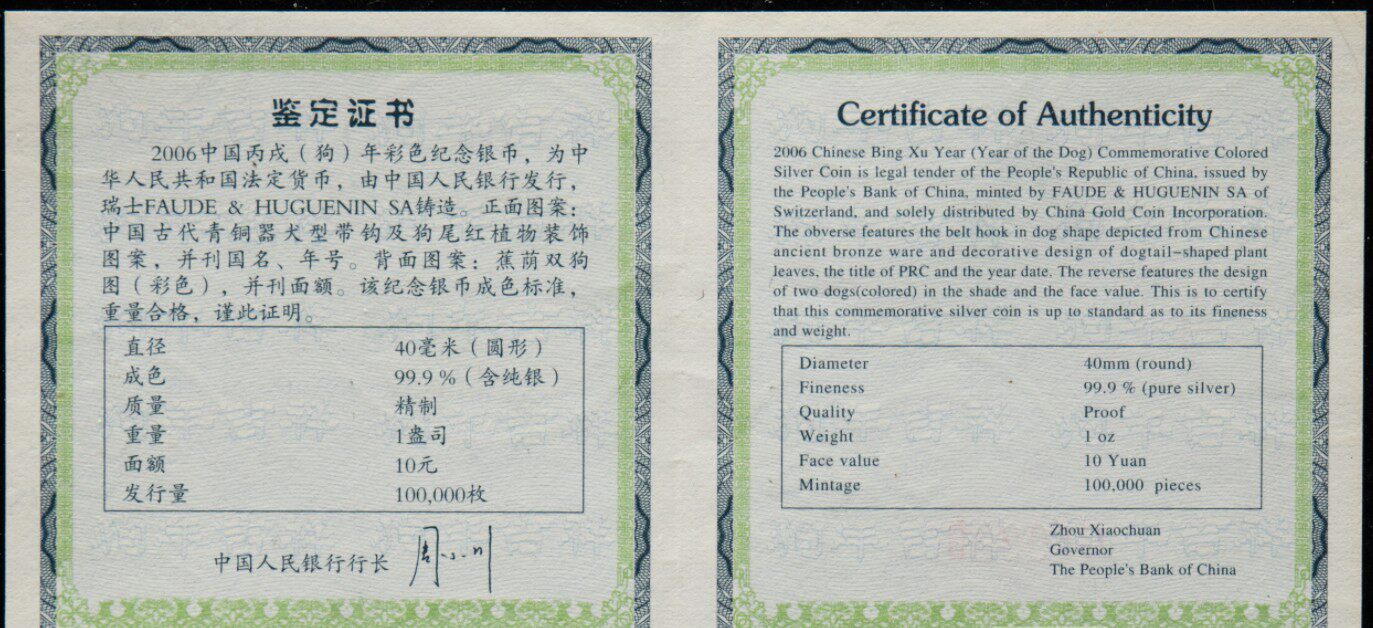 Ngc rating 70 очков с сертификатом 2006 1 унция собачья год зодиака Цвет Серебряная монета Цвет Серебряная собака