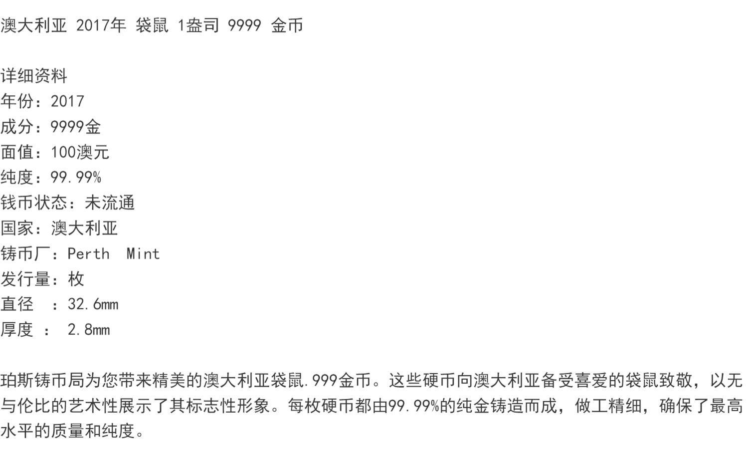 3674 = Австралия 2017 Кенгуру 1 унция 9999 Золотые монеты