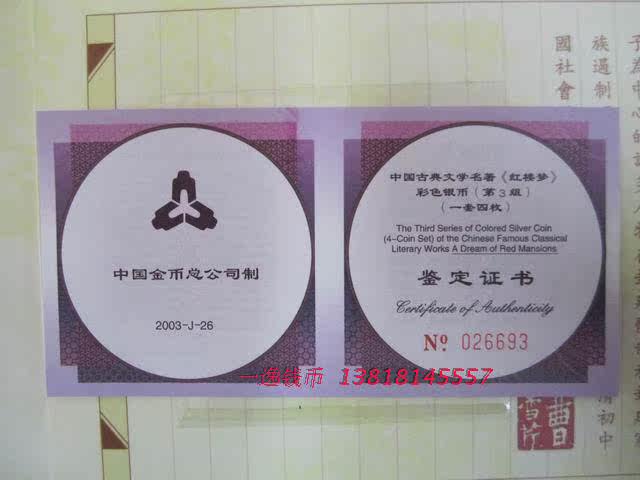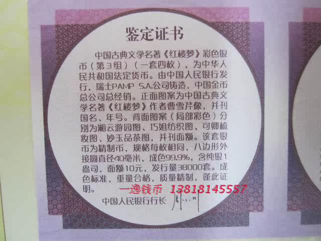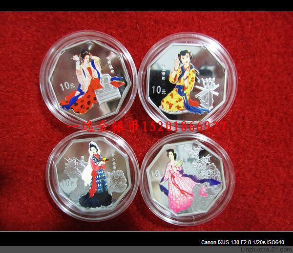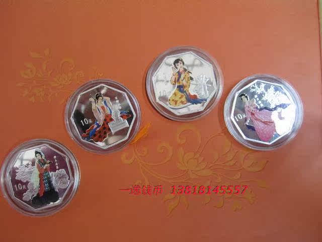 Третья группа третьей группы красного особняка мечты о 1 унциях цветных серебряных наборов (1 набор из 4) Красный особняк Dream 3 Группы золотых и серебряных памятных монет и серебряных монет