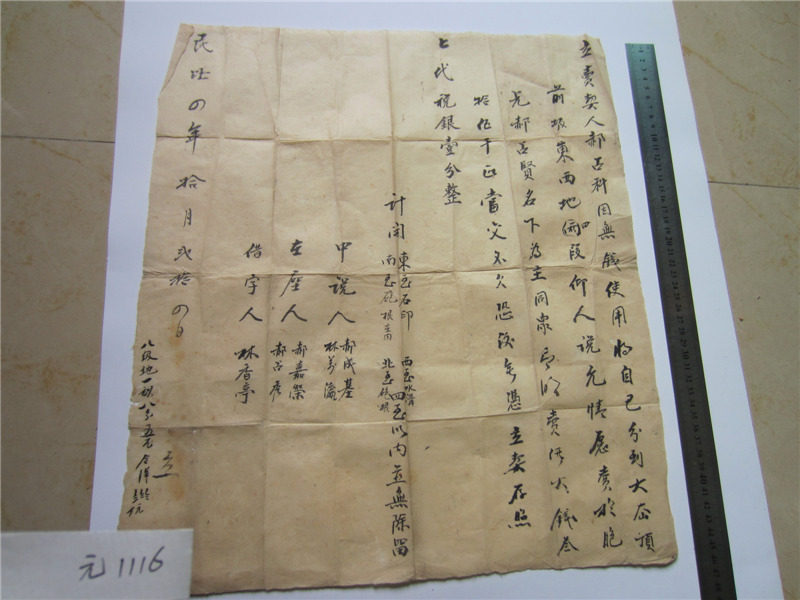 Древняя бумага Сюань Старый бумажный контракт 1 из 4 -летнего контракта на Китайскую Республику