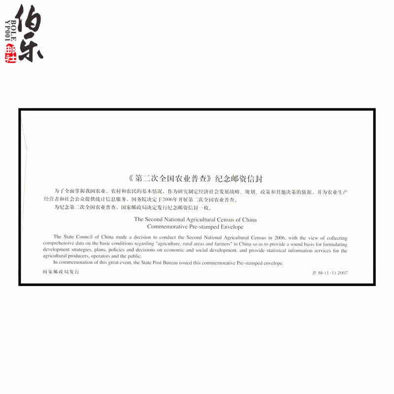 JF86 Вторая национальная сельскохозяйственная перепись Мемориальная почтовая печать