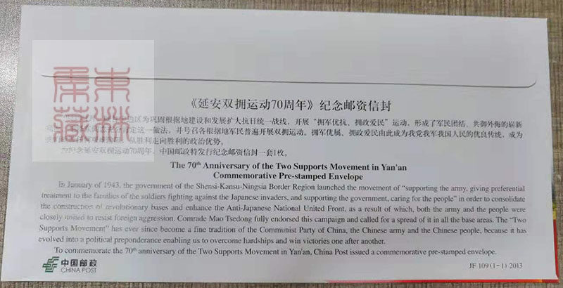 JF109 Yan'an Double Ending Movement 70th Anniversary Poste Poste Poste Prope Provelope 2013