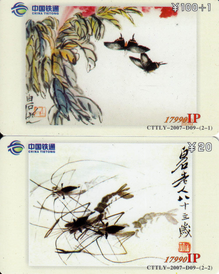 Коллекция старой телефонной карты Qi Baishi Painting 2 Pull -Rail Pass Pass Chard (только для коллекции)