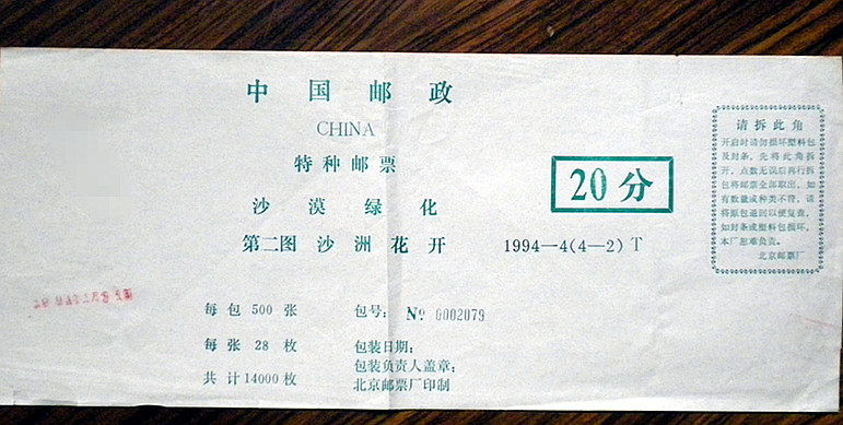 Китайский пост подписание 1994-4 Desert Green 4-2 марок. Упаковка и уплотнение.