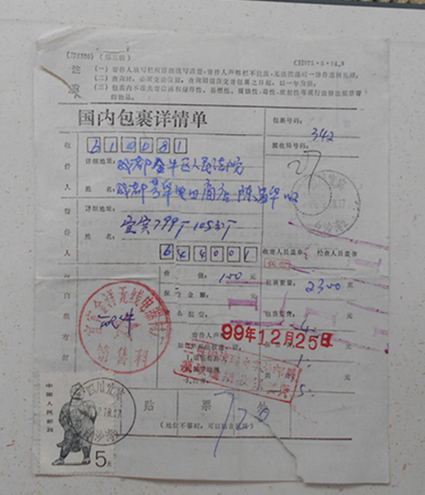 PU 24-5 Yuan Stamp yibin Zhengzheng Poster 99.12.18 Real Pack List в почтовое отделение Чэнду, чтобы проверить визу
