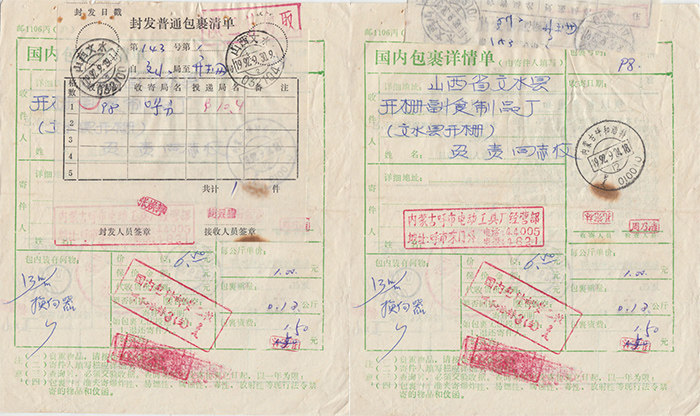 92-9-24 Hohehot Double Poke в Хохехоте, Внутренняя Монголия, завершает список печать Shanxi Wenshui B284