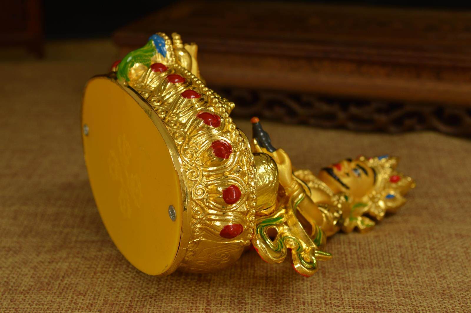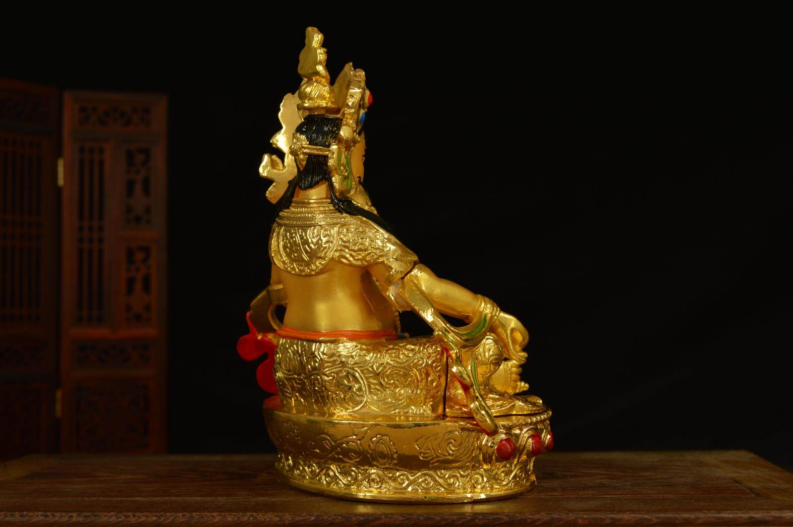 Буддийские поставки имитации непальского сплавного бронзового бронзы, золота и тибетской плотной буддийской статуи статуи Будды Будды, бога Зангбара Гао 15 см.