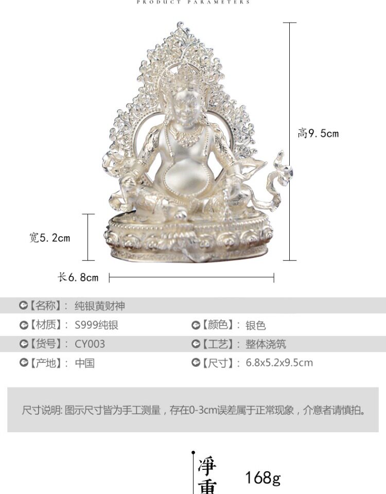 Серебряное серебро S999 Huang Caishen Buddha Статуя Huang Cai Idol Ornament of Sterling Silver изначально приказал Будде домой поклоняться
