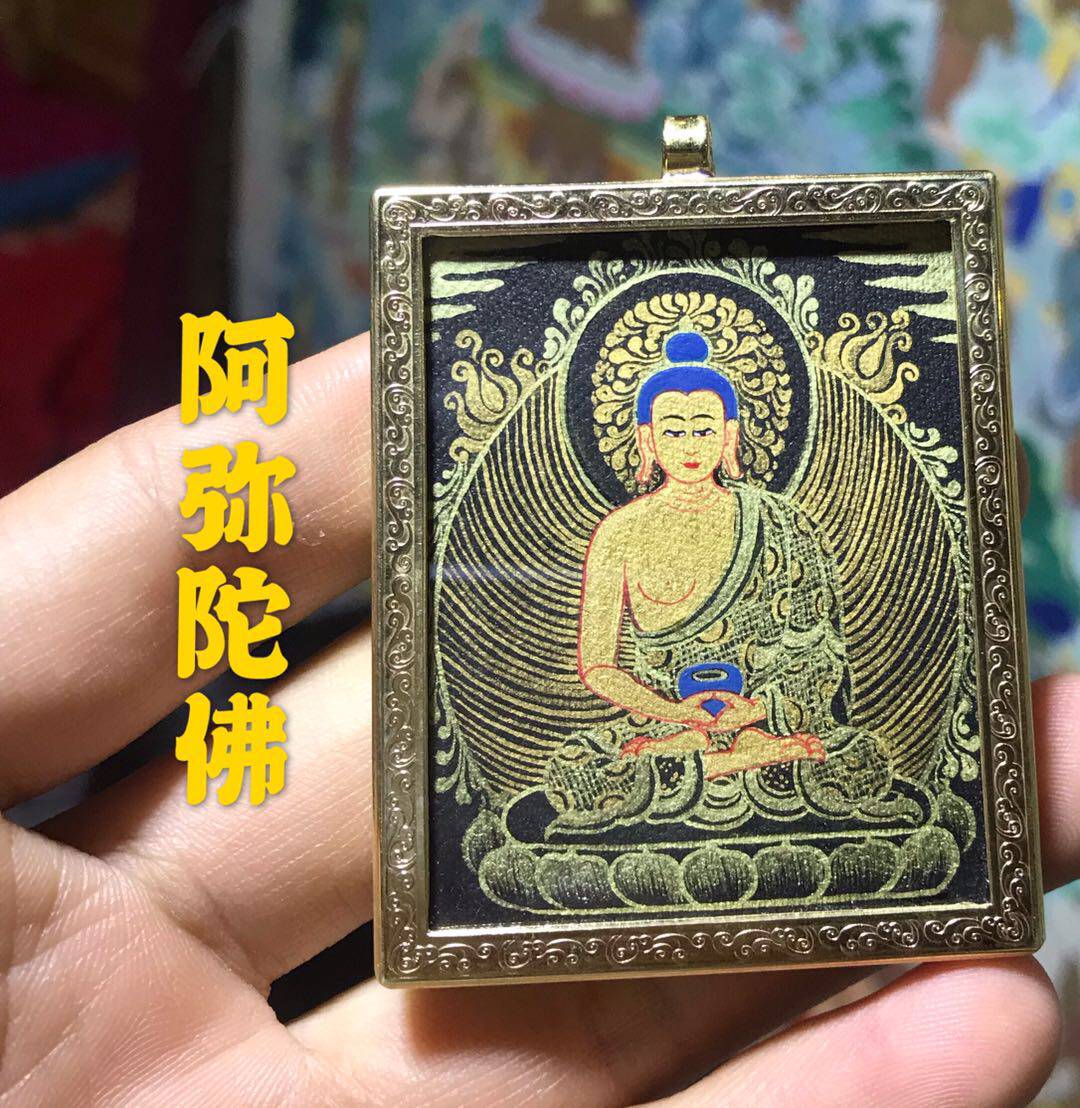Портативная амитабха Тхангка У Сяотан Буддийская Будда Карта Будда Чистое золото вручную привлекает гунонг -тангку