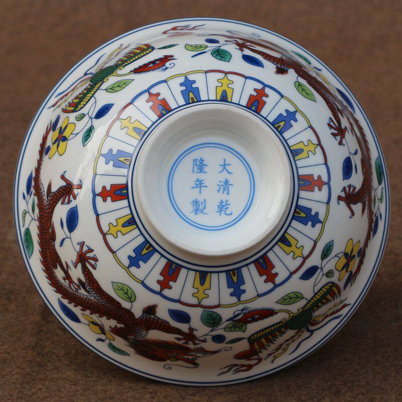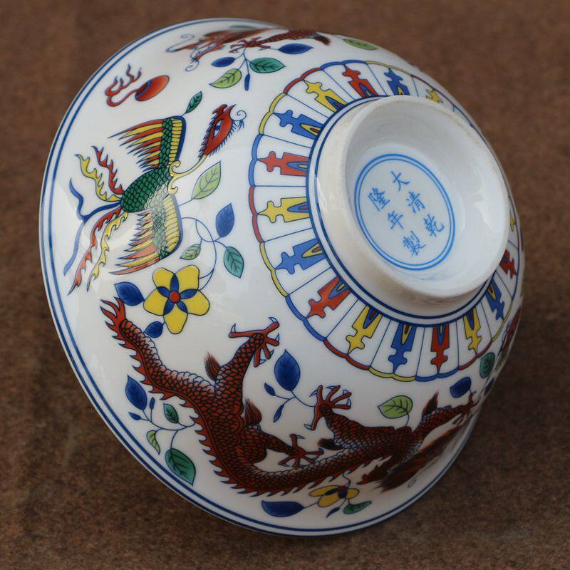 Детское имя: антикварная фарфоровая миска Shuanglong Doucai