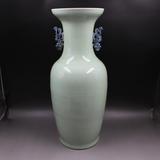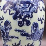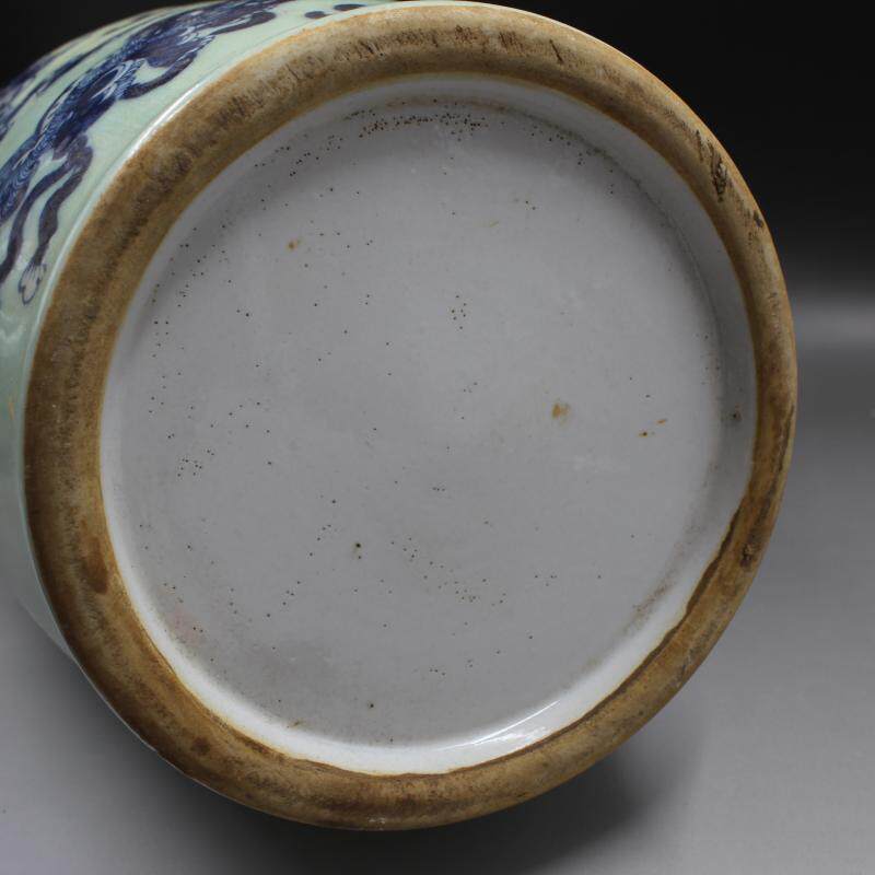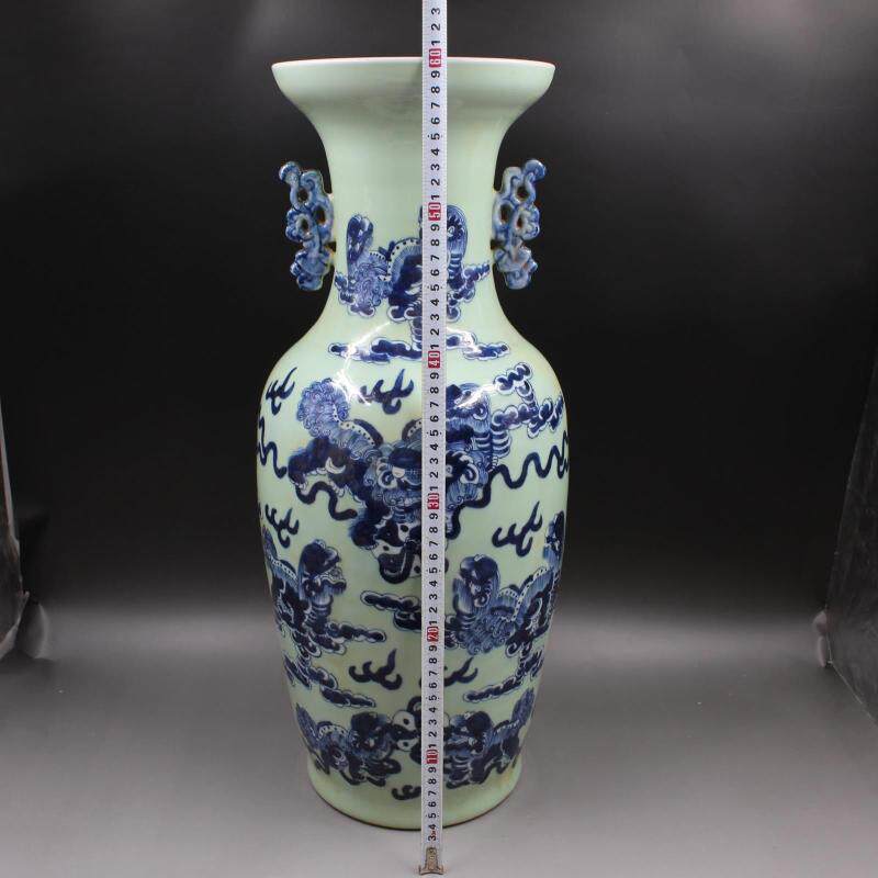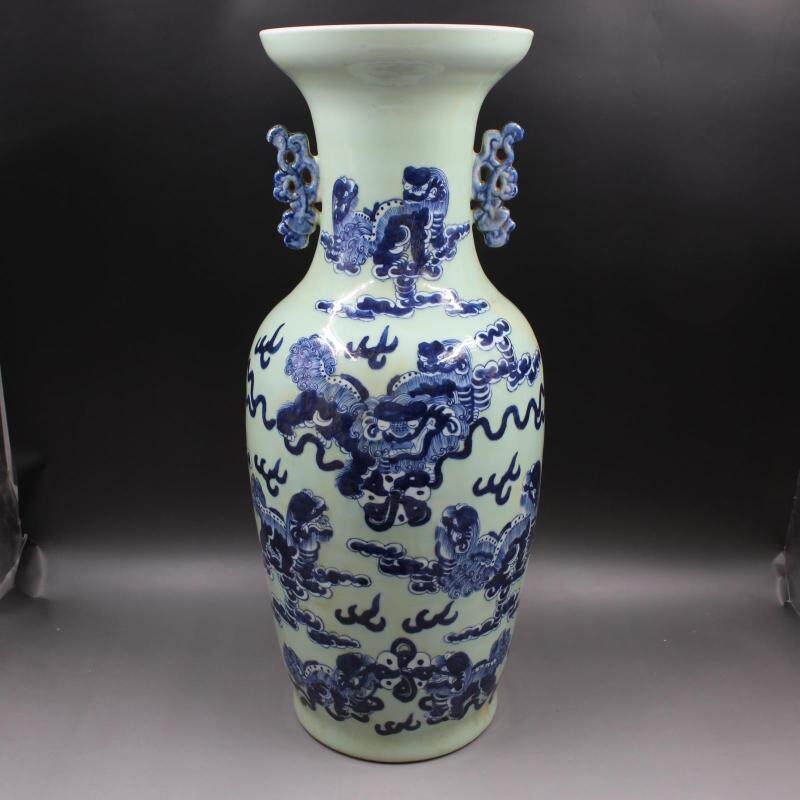 88.1 Цин Кангси бобовой бобы зеленая глазурь Синяя и белая львиная рисунок бабочка имитация старых товаров фарфоровые украшения антикварные коллекции