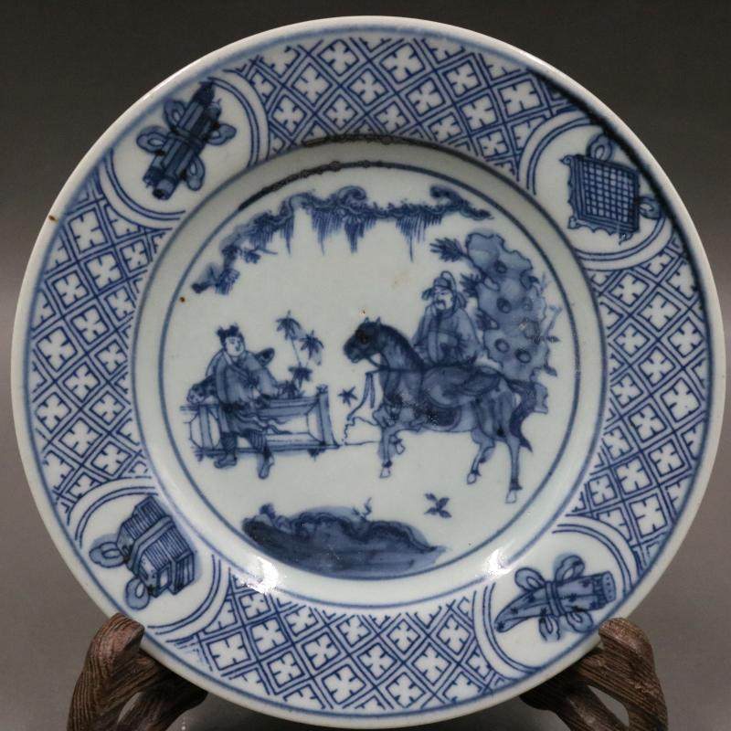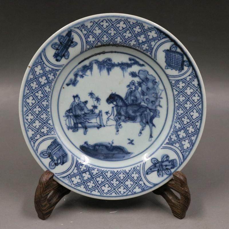 Цин сине -белые персонажи История История маленькой тарелки старые товары фарфоровые дома винтажные украшения украшения антикварные коллекции