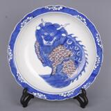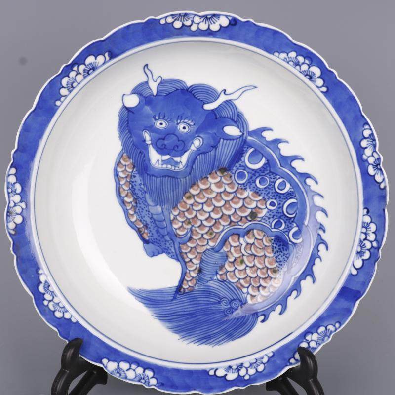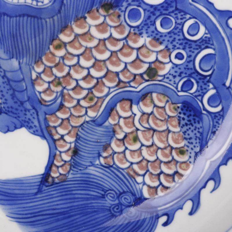 Династия Цин Канси сине-белое подглазе красное однородное рисунок тарелка с антикварными изделиями с антикварными изделиями.