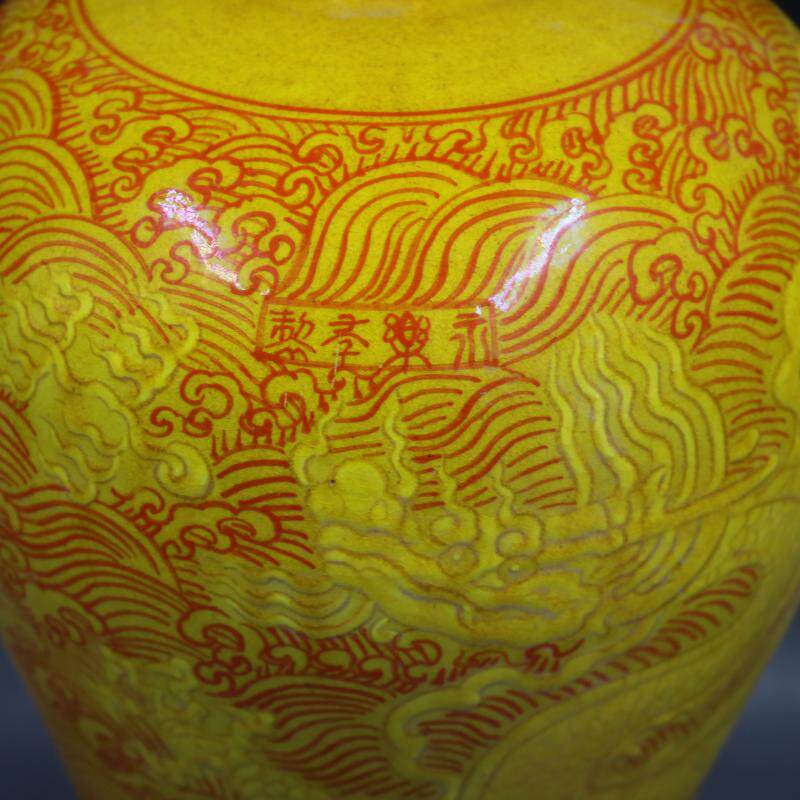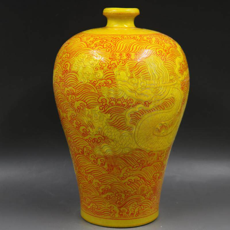 Ming Yongle Окрашены и темная гравированная морская вода -драконная паттерна слива Vase Home Старые товары