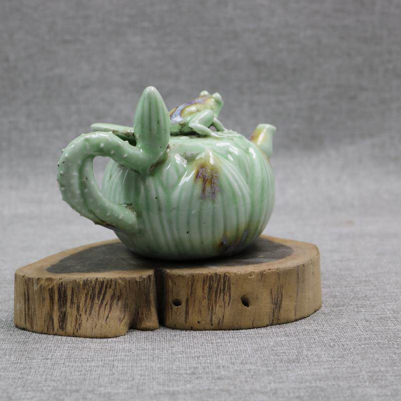 Династия Цин Зеленая Глазурь Лягушка Летус Листовые цветы антикварные антиквариат антиквариат создают старые фарфоровые старые товары украшения