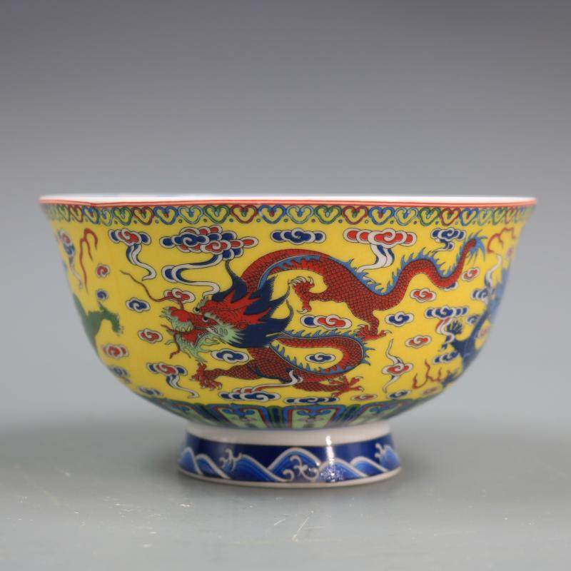 Цин Цяньлонг Желтый Флаттер Кайюн Дракон Паттерн Античный рисунок