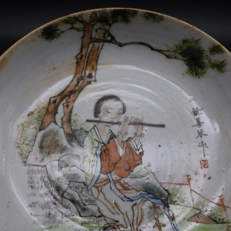 Республика Китайская легкая малиновая персонаж Джейд Девушка сдувает флейту картинки плита