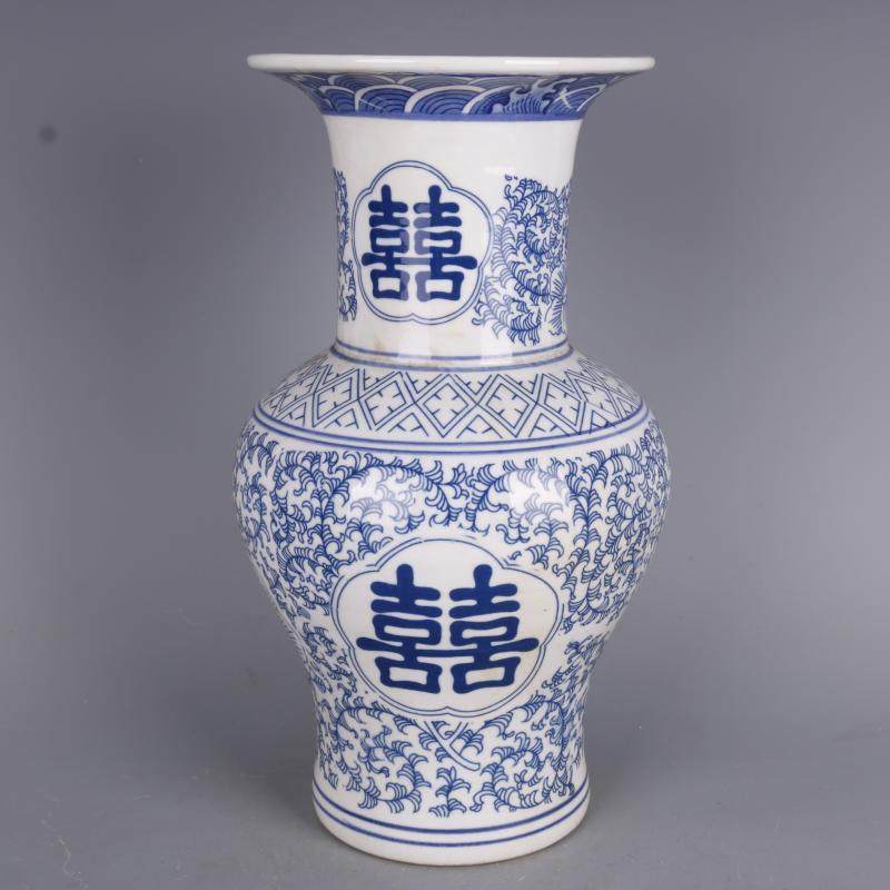 Цин Цяньлонг Синий и белый запутанная запутанная двойная ваза с двойной вазой ваза с антикварным фарфором дома китайская гостиная украшения антиквариат антиквариат