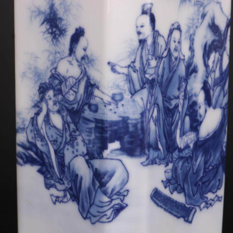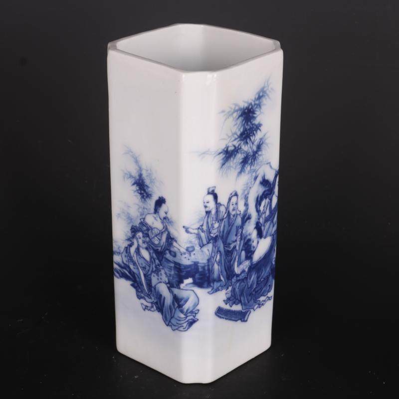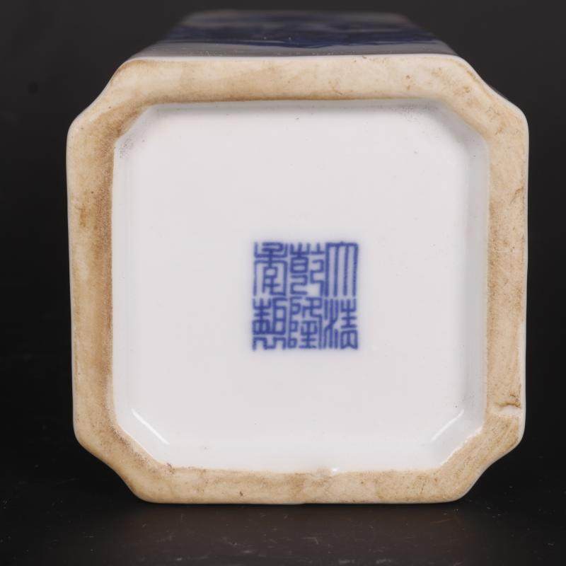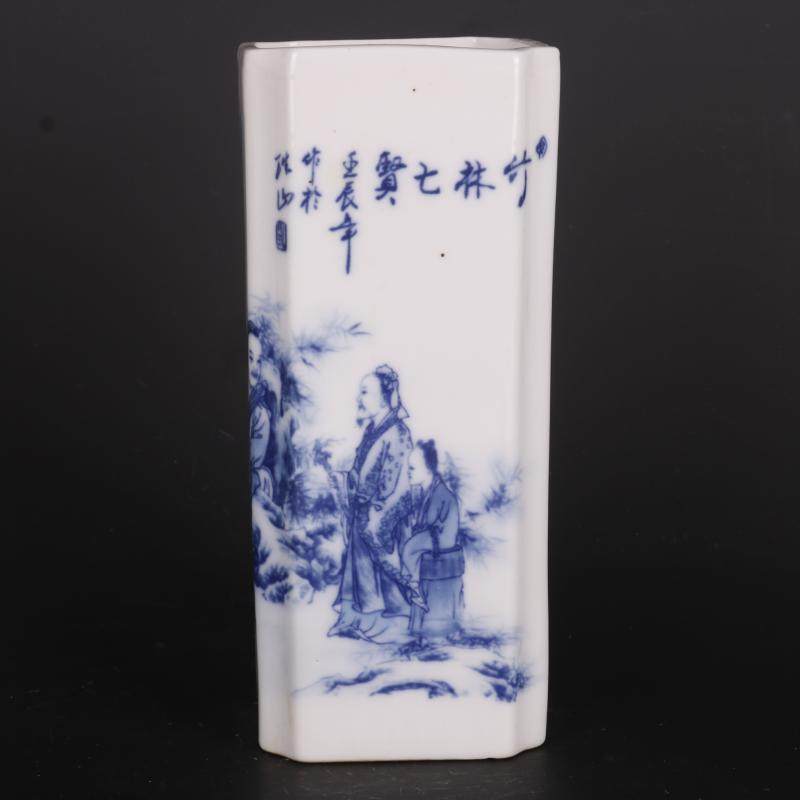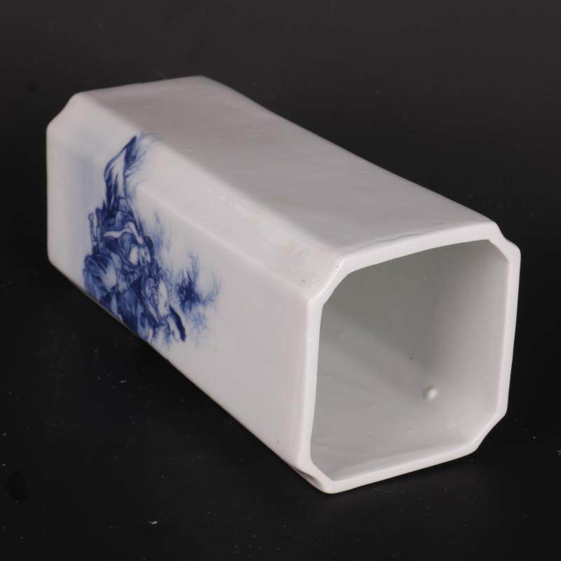 Цин Цяньлонг синий и белый рисунок фигура квадратный держатель ручки домашнее исследование украшения антикварные ремесленные фарфоровые антикварные антикварные коллекции