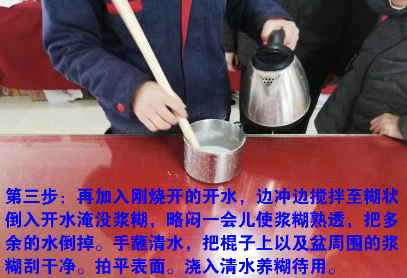 &Nbsp; метод создания: поместите муку в бассейн плитки, сделайте квасцов в тонкий порошок и пропорционально вылейте ее на муку. , это неправильно, вы должны помнить).Затем перейдите к нижней воде, то есть налейте небольшое количество теплой воды, перемешайте палкой в толстую пасту и чуть больше, чем на несколько минут. Затем левая рука поднимает кипящую воду, а правая рука удерживает палку ( Левый человек -это наоборот). Никогда не будьте неблагоприятными, иначе произведенная паста станет разбавленной водой без липкости.Кроме того, обратите внимание на время смешивания, время не должно быть слишком коротким или слишком длинным.Время короткое и не было взволновано и не имеет вязкости. Через долгое время оно становится блоком и становится глютеном. У него слишком мало вязкости.Маска обычно удерживается примерно через 15 минут.При перемешивании количество воды не должно быть слишком или слишком мало. Если вы получите больше, вы можете получить тонкую пасту, и вы не получите ее в сухую пасту. Они нельзя использовать для монтажа.Как правило, это толстая и паста, и нет сухой лапши, ни для разжигания.Посмотрите на это во время просмотра.Медленно накапливает опыт.Недавно сделанная паста особенно липкая, и неудобно понять консистенцию. Следовательно, модулированная паста должна быть немедленно пропитана в среднем охлаждении воды, прежде чем ее можно будет использовать.Замачивание с водой также может предотвратить сухие узлы.Выберите одну часть со временем, а затем сделайте пасту для монтирования.
