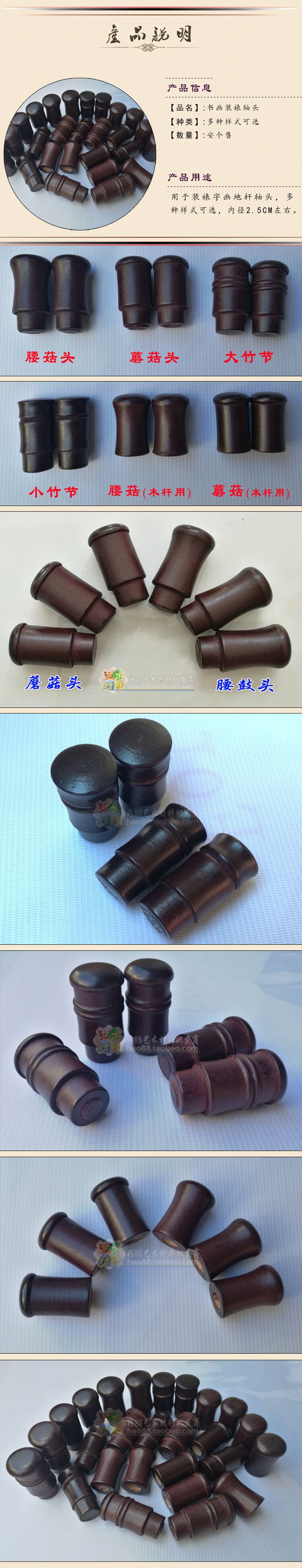 Каллиграфия и живопись Монтажная ось оси антикварный вал Головка Небесная Земная стержень Имитация головки вала красного дерева.