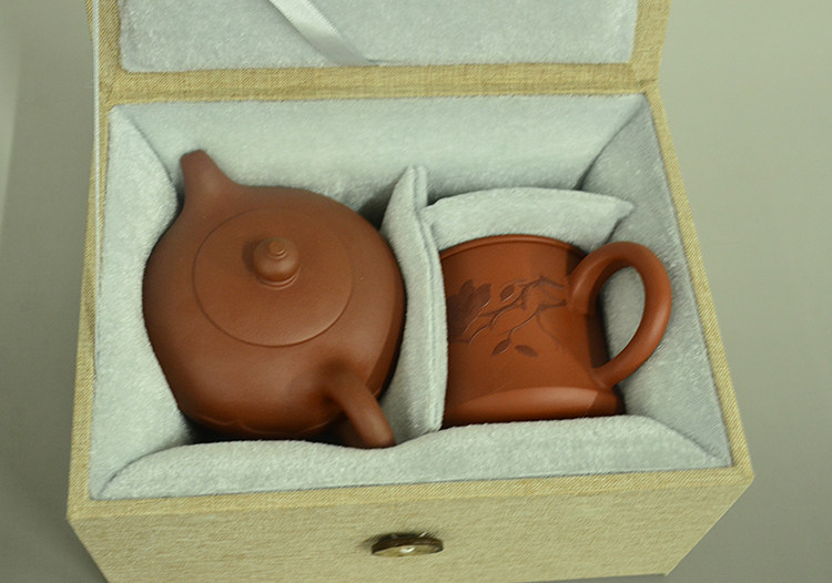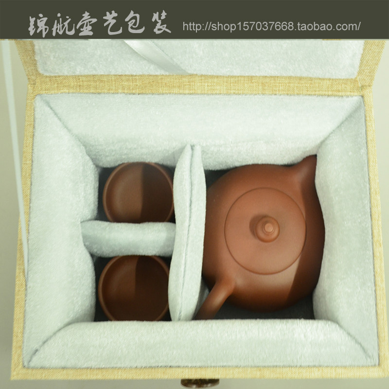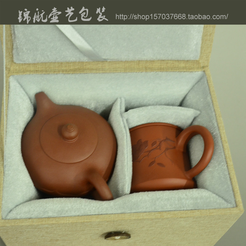 Горячая распродажа Yixing Zisha, одна кастрюля из двух чашек упаковочного стеклянного фарфорового коллекции Подарочные кнопки, настройка длинной квадратной парчовой