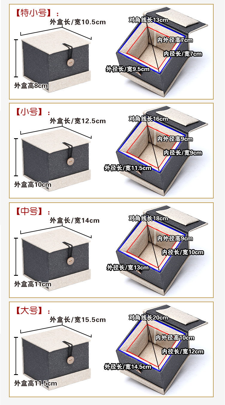 | Технические характеристики: | Special Small: 11*11*8, Маленький: 12*12*9, Середина: 14*14*10, Большой: 15*15*11 |