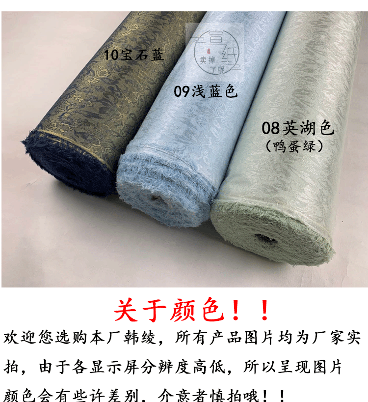| Классификация цветов: | 01 чистый белый (изысканный белый), 02 Буддизм желтый, 03 молоко белое, 04 Древний золотой цвет, 05 мелкий кофе, Серебристо-серый, 07 Бронзовый цвет, 08 British Lake Color (утиное яйцо зеленого цвета), 09 светло -голубой, 10 драгоценный синий |