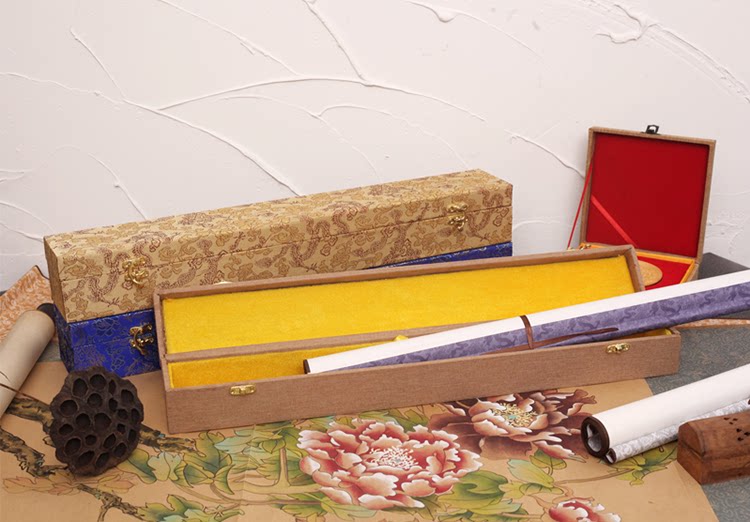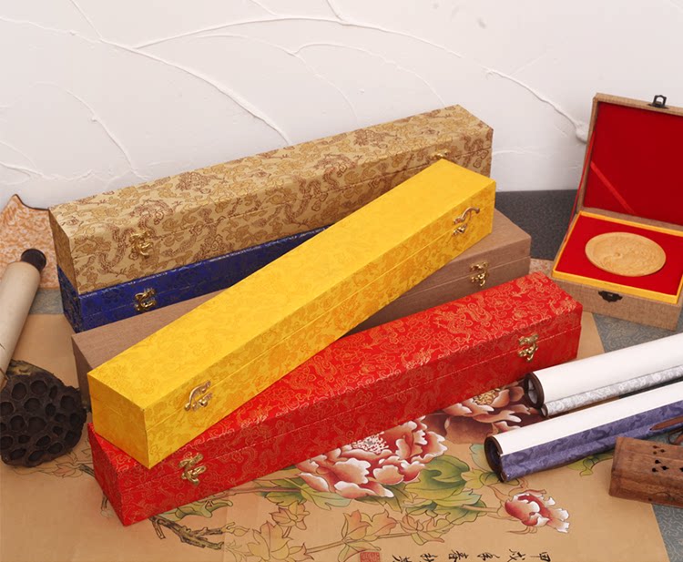 Высокая флип -флип -каллиграфия и спектр художника, рисовать рисовать парчонную коробку Упаковку китайскую живопись ежегодную картину.