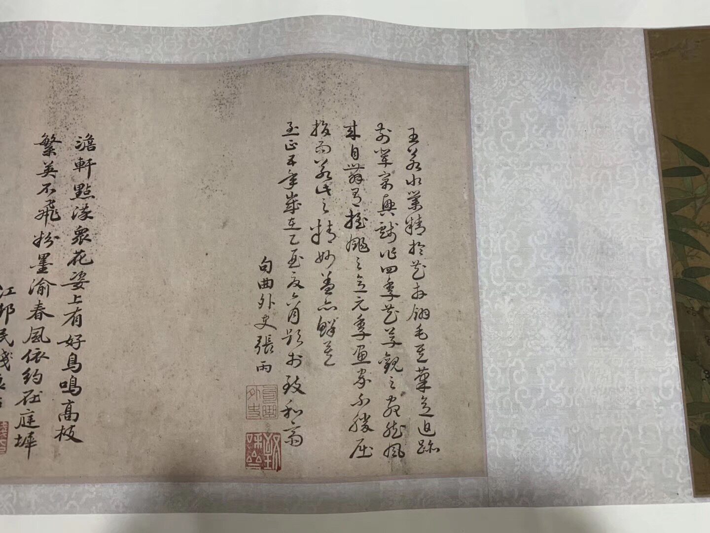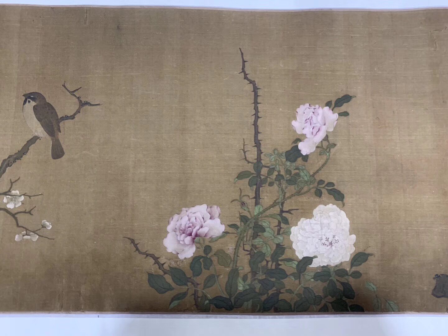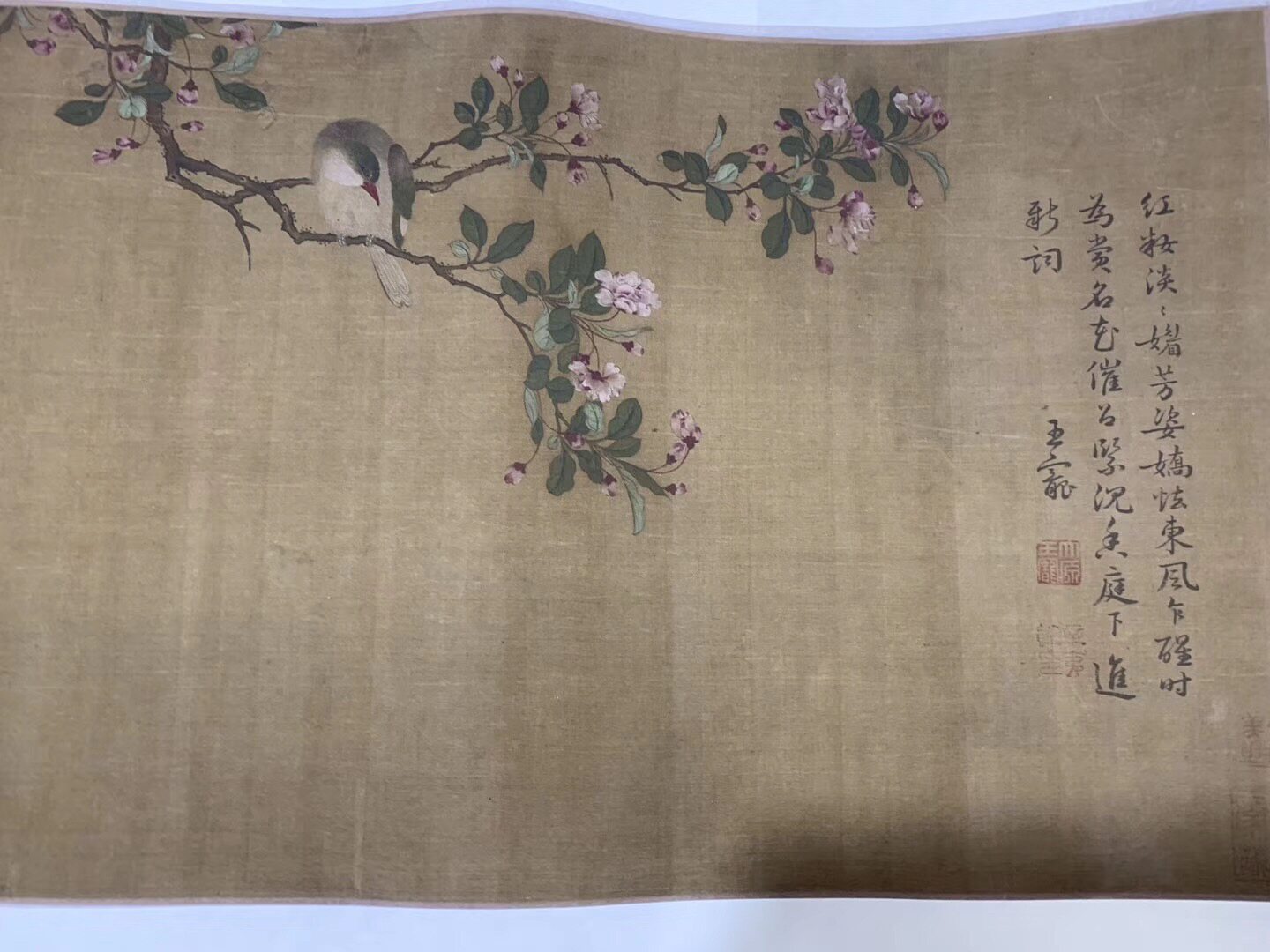 Ван Юань Цветок и Птичья карта Длинной рулон, художественная микро -спрей, высокооделенная копия, 28 см в длину, 220,8 см в горизонтали.