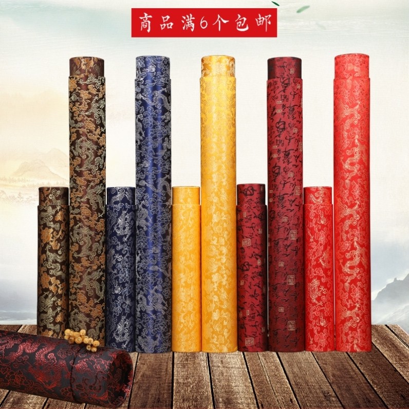 Китайская картина Коллекция Коробка Каллиграфия и живопись парлая коробка цилиндрического искусства. Растягивающие персонажи каллиграфия