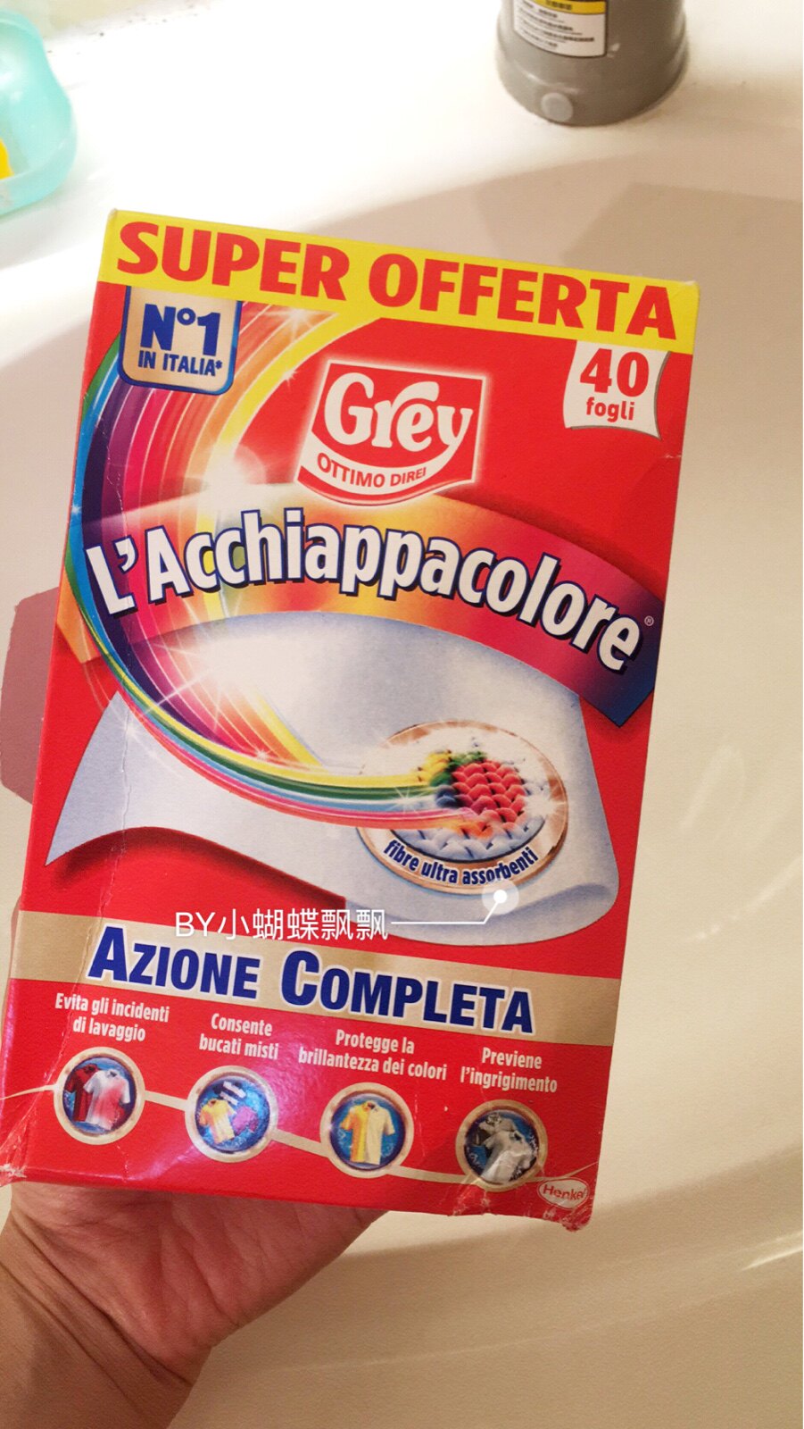 [Как использовать]: Перед стиркой возьмите его и положите его в барабан стиральной машины.Затем поместите дозу и воду в тот же порошок прачечной, что и обычная программа прачечной.После стирки выньте бумагу для защиты цвета и выбросьте ее.