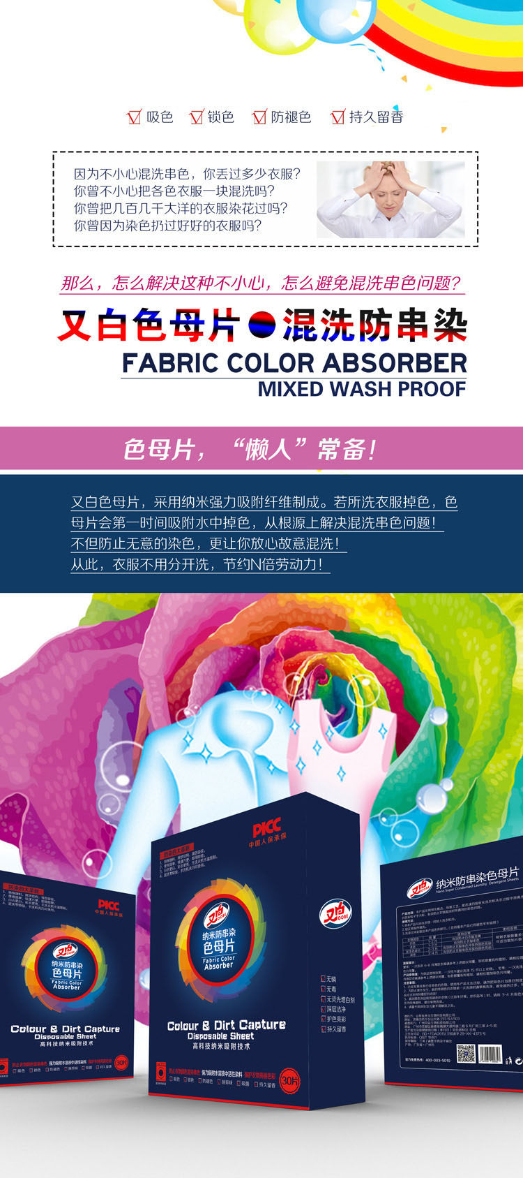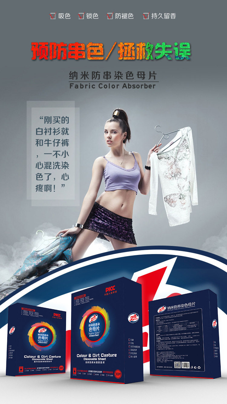 又白 Color Mother Tablets Nano -Anti -Dyeing Одежда, смешанная с анти -юридическими нарядами.