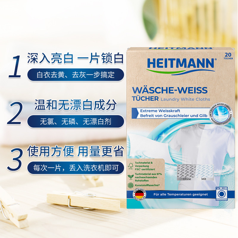 Германия Heitmann Heit Белая бумага для одежды восстанавливает белую одежду для стирки одежды для Huang Zeng White Artifact 20 таблетки