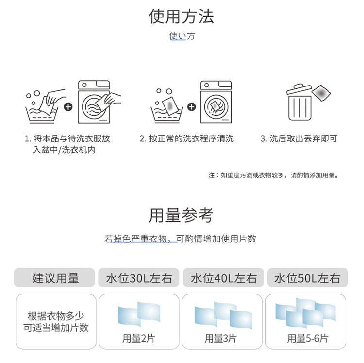 Японская анти -хриплом цветовой всасывание цветовой одежда Анти -насажденная цветовая стиральная машина -поглощение женских пленок против пластинчатых семейств.