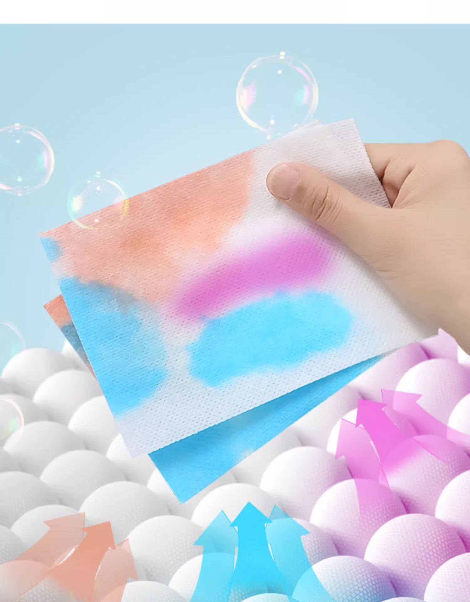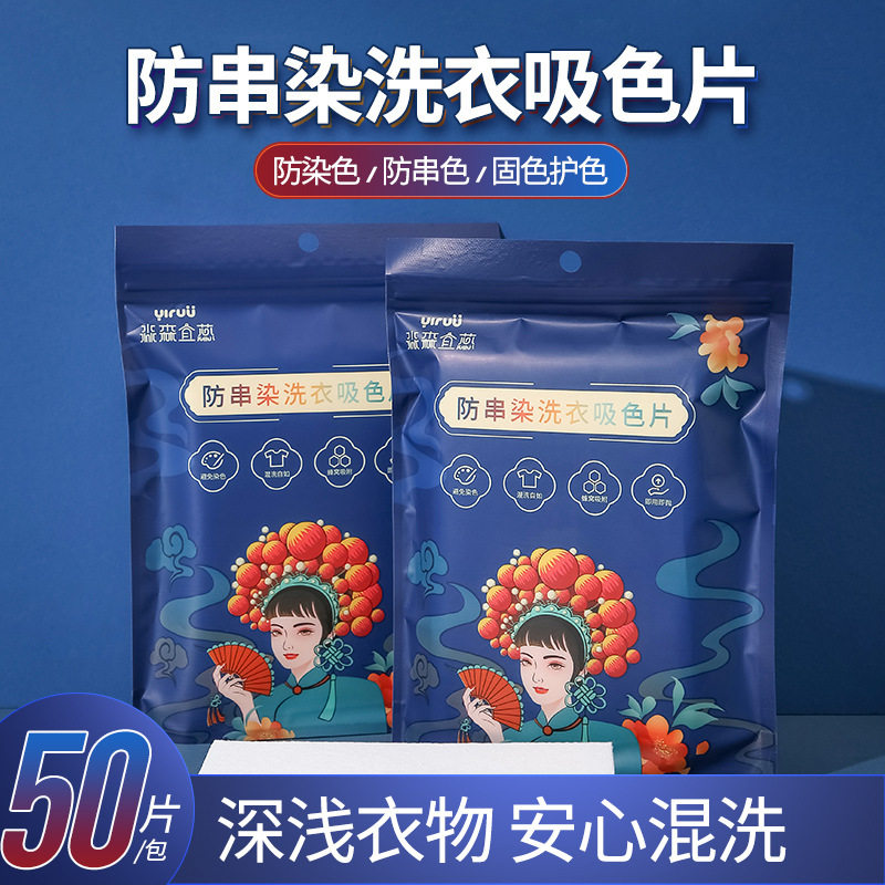 50 кусочков сосания в сосаниях против одежды для мытья бумага для стиральной бумаги, цветные женские шашлыки, таблетки для стирки цветов, смешанная бумага